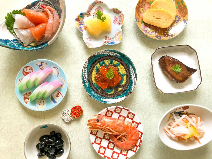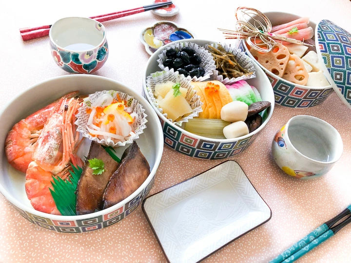 Additionally, festive-shaped serving dishes like chrysanthemum or flower-shaped plates are ideal for individual portions of osechi dishes or grilled fish.Collecting them in different patterns instantly brightens up the dining table.