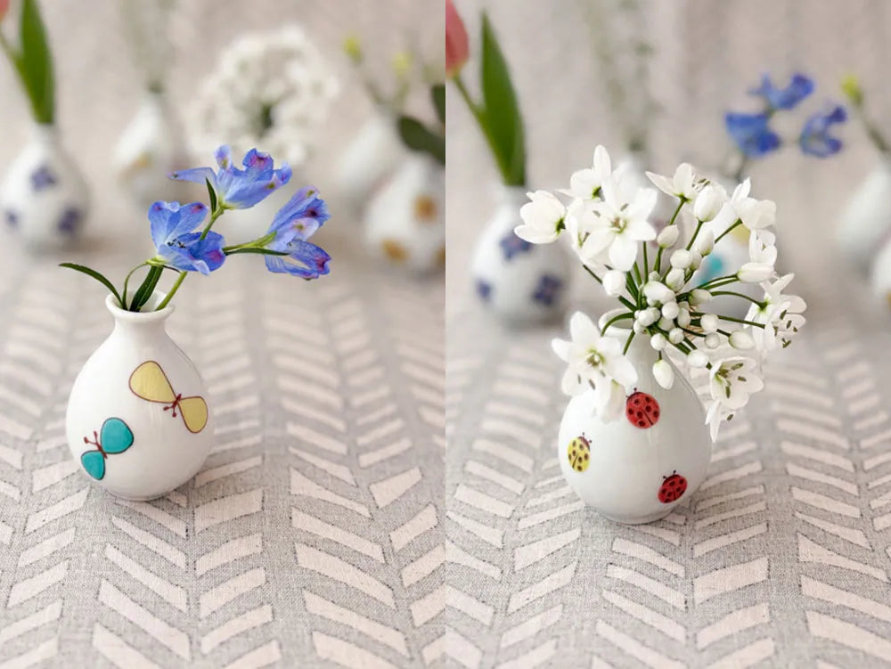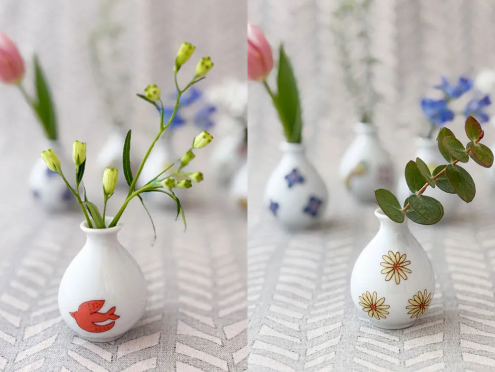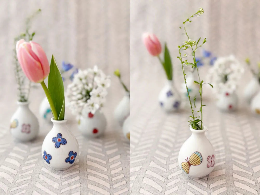 Halekutani's single-flower vases are very small, the size of the palm of your hand. It is easy to put a single flower in a vase.