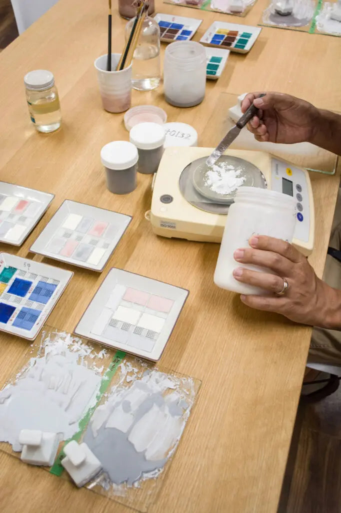 These items are a technical challenge. Since Kutani ware is attractive to begin with because of the decoration called painting, I thought that the campus was not only for ceramics, but also for other types of art. We thought that the campus was not only for ceramics, and then we happened to come across a material called new ceramics. Then we realized that the Japanese pigments we had developed could be used for painting on new ceramics, and we were able to introduce these items to the world.