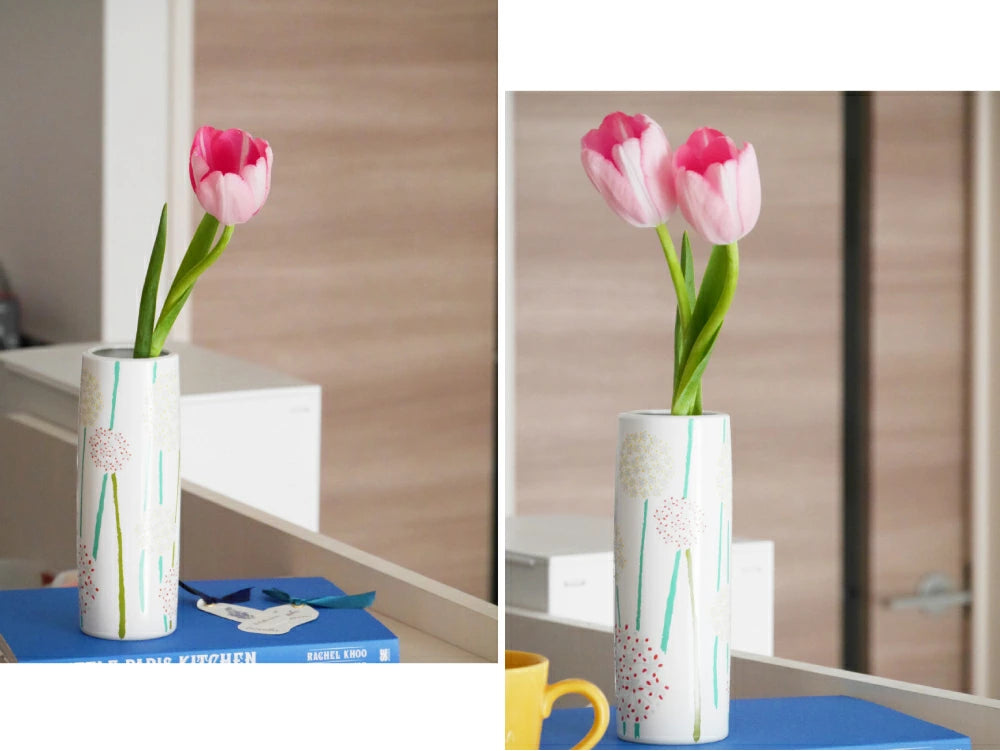 This time I arranged the tulips in a vase from the new Harekutani series.