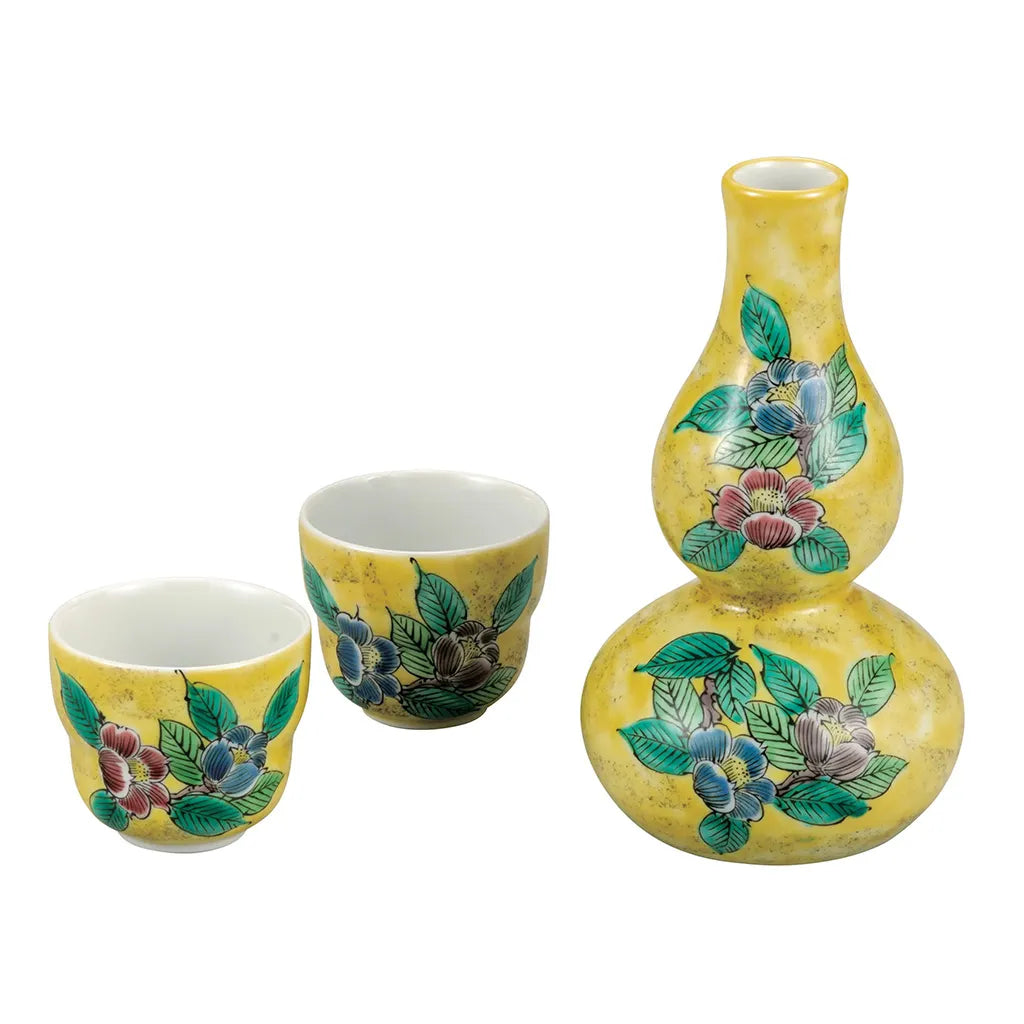 Kutani Yoshidaya Camellia Japonica Sake Set