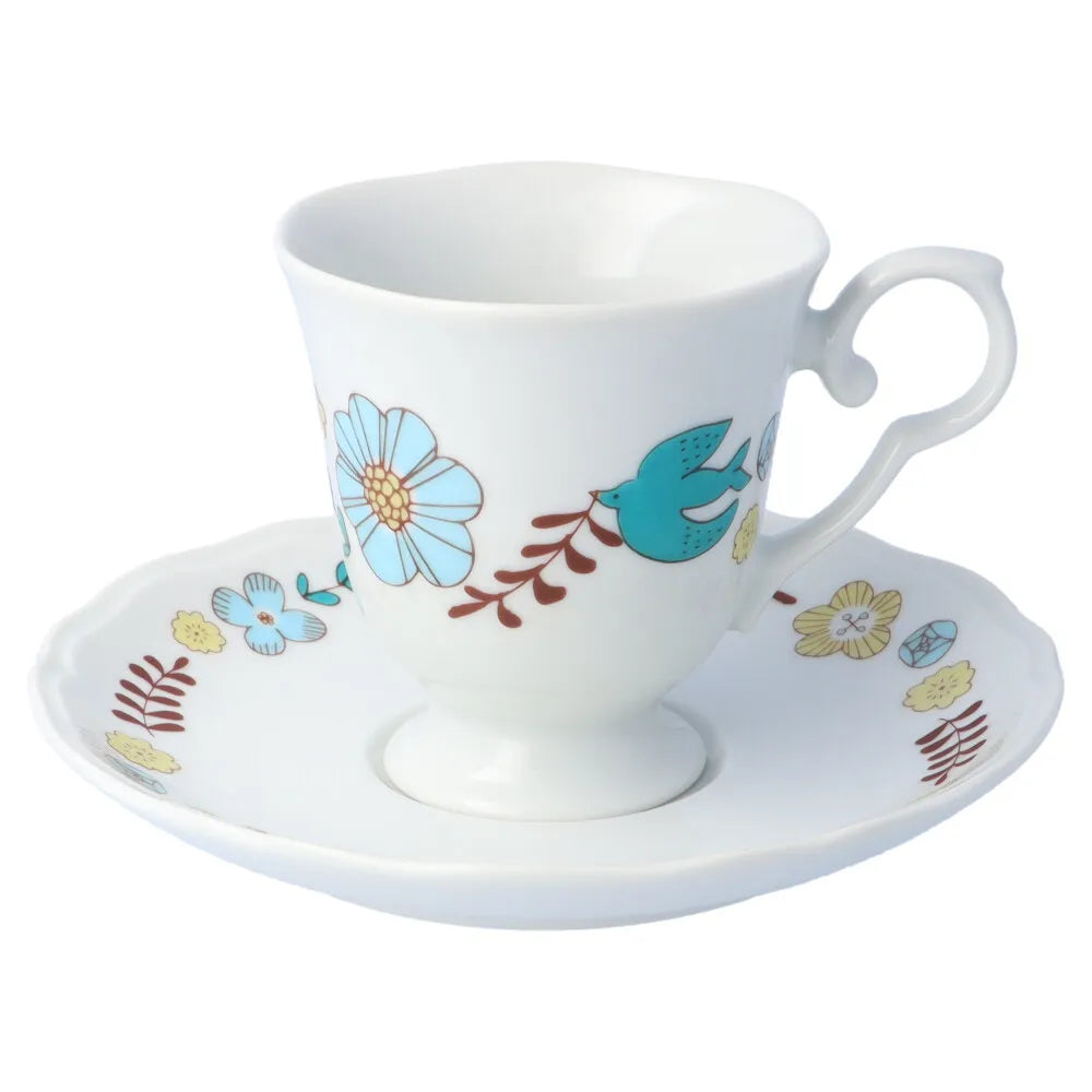 Harekutani Flower and Bird (blue) Cup and Saucer