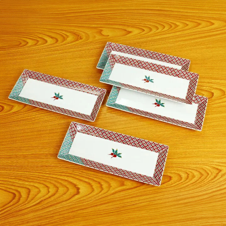Seiko Kiln Kutani Red Radish Large Rectangle Plate (5pcs)