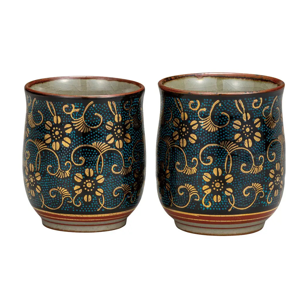 Kouyou Kiln Kutani Hanazume Japanese Teacup Pair